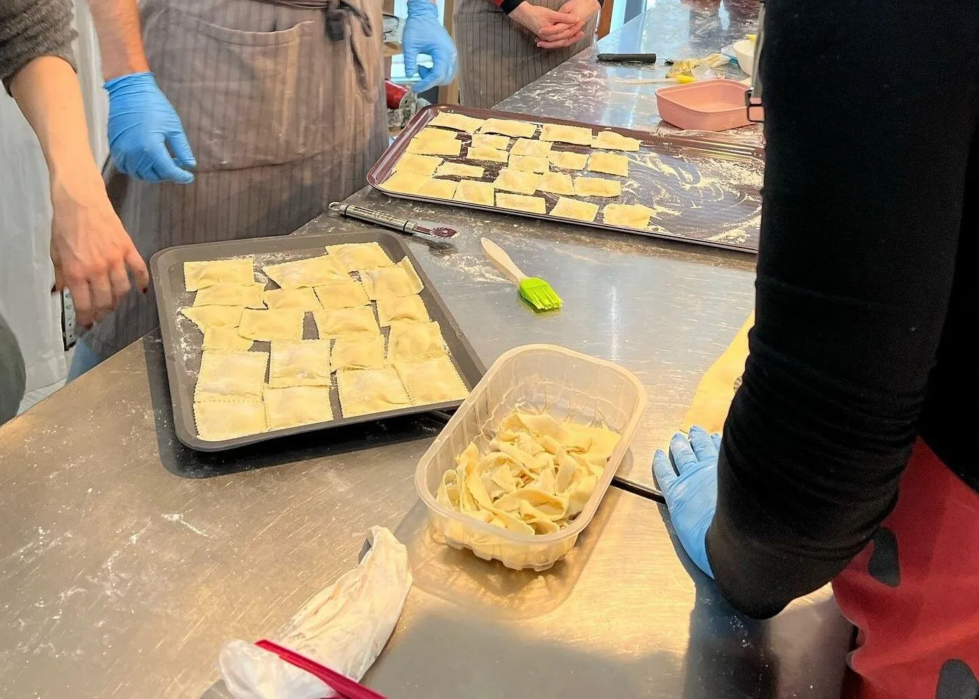 Nel corso della lezione preparerete diverse tipologie di pasta fresca da zero (tagliatelle, gnocchi e ravioli) salsa cacio e pepe, ragù ed altri piatti tradizionali della cucina italiana, come parmigiana e tiramisù.