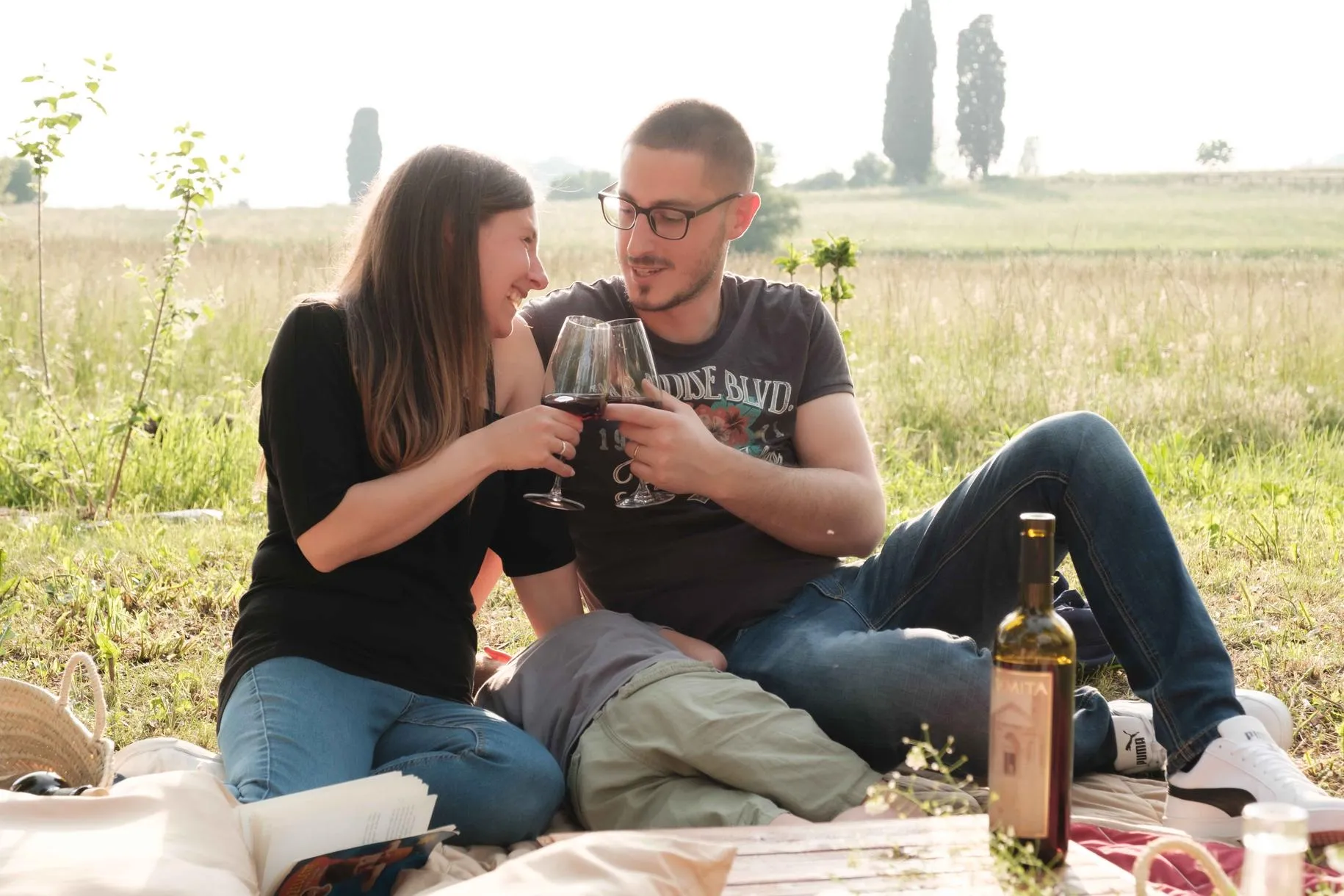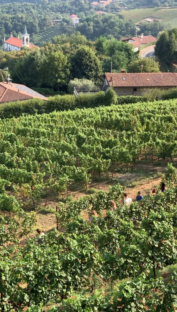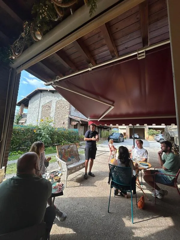 Aperitivo e degustazione di vino al tramonto in una location romantica tra le vigne fuori Bergamo a Scanzorosciate.
