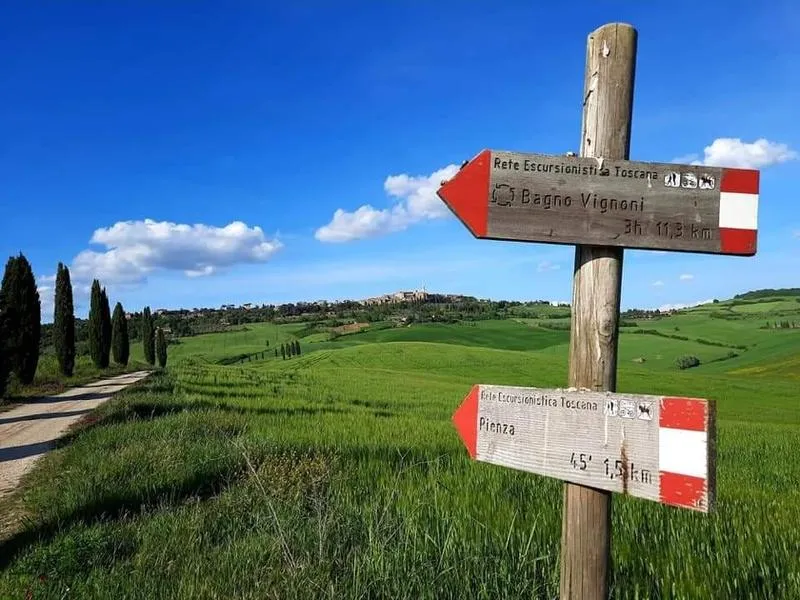 Il tour Monticchiello è un'ora di percorso attraverso strade bianche e sentieri che conducono alla splendida Val d'Orcia, permettendo di ammirare borghi incantevoli durante la guida.