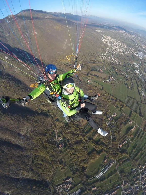 Volo in parapendio biposto tra Pinzolo e Madonna di Campiglio ideale per provare un'avventura godendosi i paesaggi da un prospettiva unica.