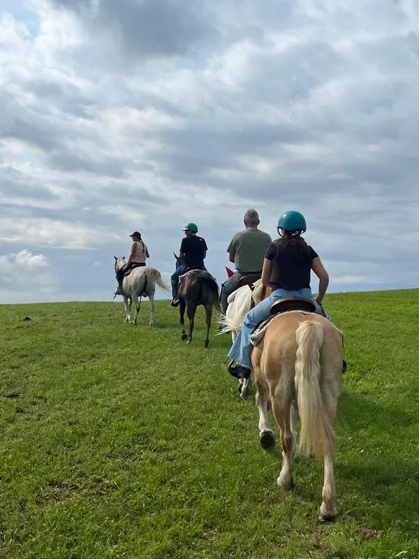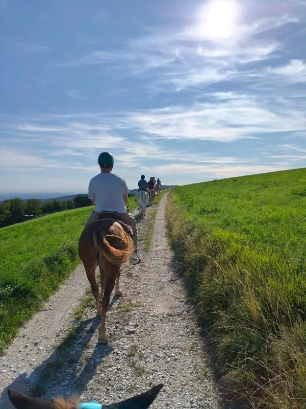 Le escursioni sono adatte a principianti che vanno per la prima volta a cavallo. Si passeggia in mezzo alla campagna e ai boschi e si raggiungono alture da dove si può ammirare un panorama bellissimo, e ci si può fermare per delle brevi soste.