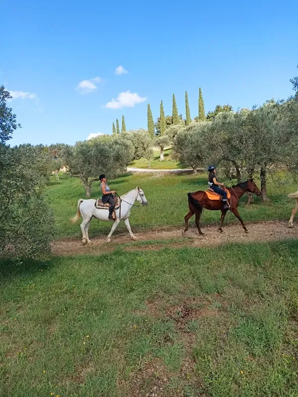 La passeggiata a cavallo tra vigneti e uliveti vi farà attraversare la famosa "strada del vino e dell'olio".