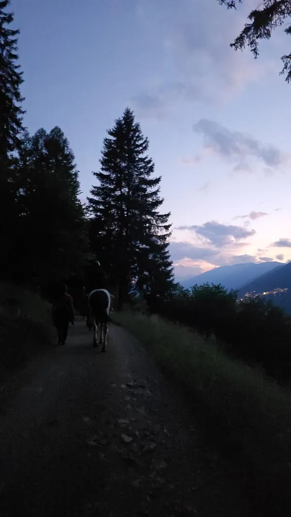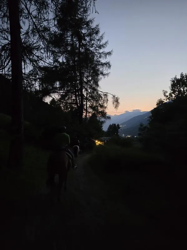 Passeggiata nel bosco in Val di Sole, adatta ai principianti. La passeggiata a cavallo è sempre organizzata in compagnia di una guida equestre.