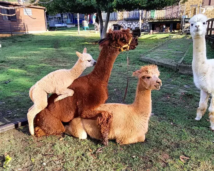 Durante la passeggiata con alpaca si effettuano delle soste per un totale di circa 10 minuti durante le quali è possibile interagire con gli alpaca, dargli da mangiare, fare foto e video.