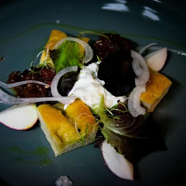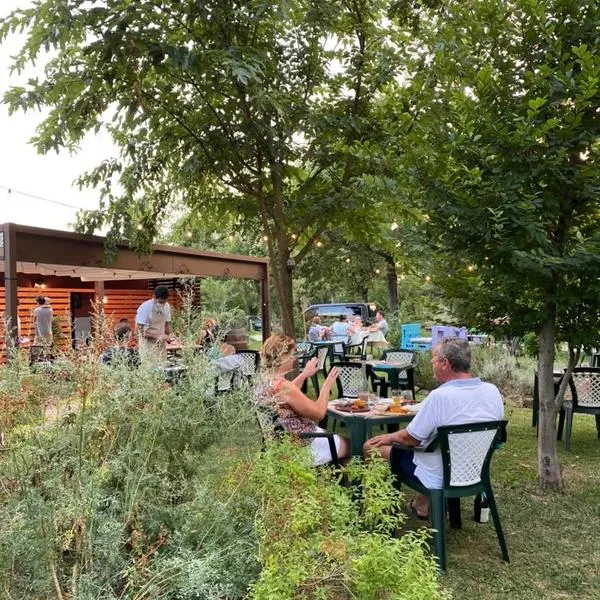 È possibile mangiare nei locali interni ricavati dalla vecchia stalla, nel patio e, nei mesi più caldi, anche nel giardino esterno.