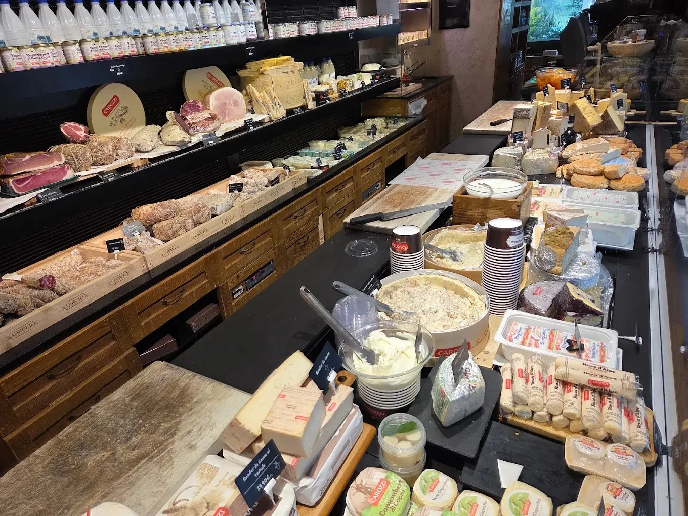 Shop next door has a wide range of cheeses and salami.